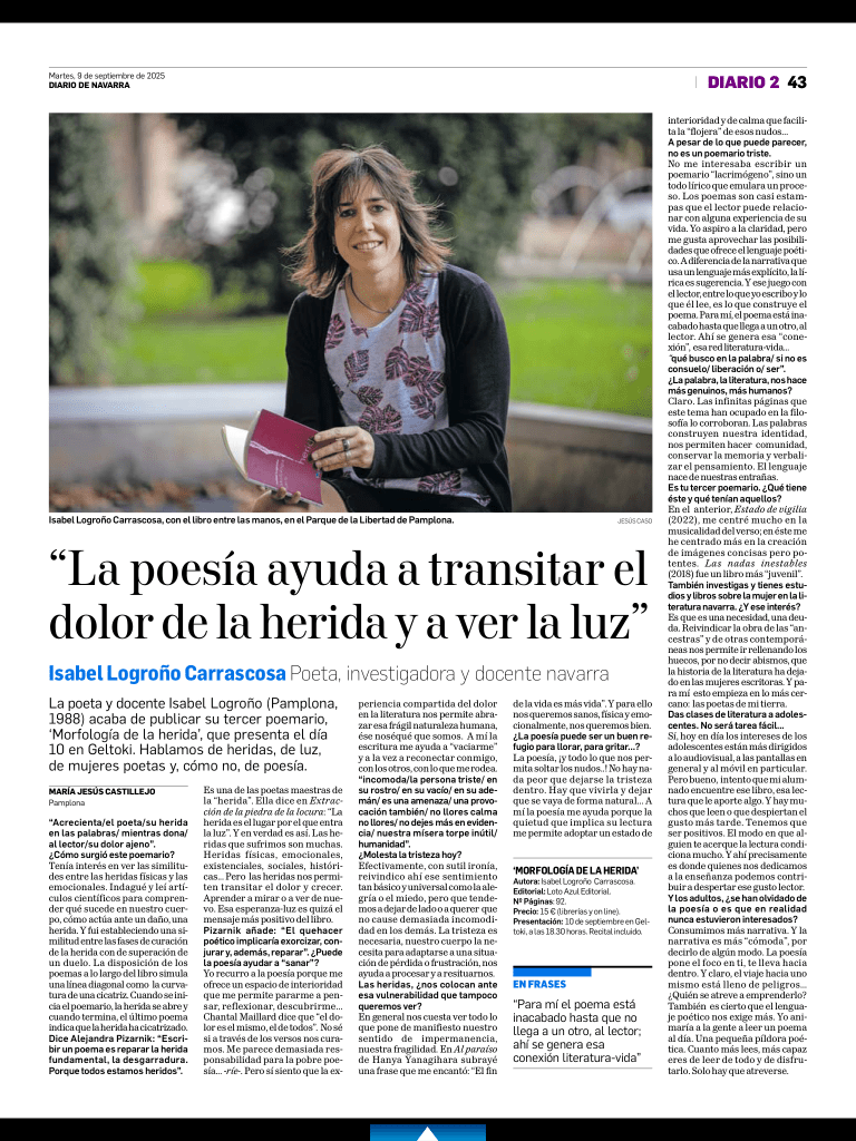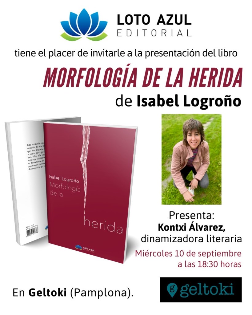 El pasado miércoles, 10 de septiembre, tuve la oportunidad de presentar Morfología de la herida (Editorial Loto Azul) en el corazón de Pamplona. La antigua estación de autobuses, ahora convertida en el espacio cooperativo Geltoki, nos ofreció su espacio para ofrecer encuentro, música y versos.