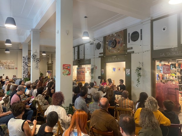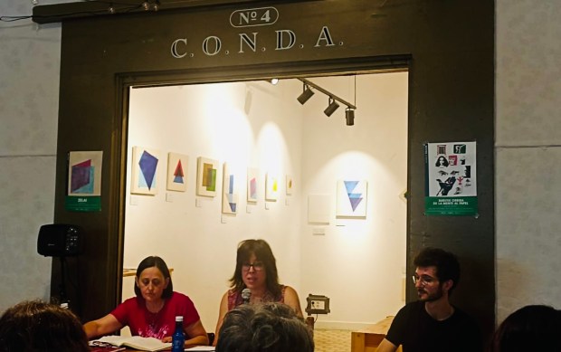 La dinamizadora literaria, Kontxi Álvarez, y el guitarrista y profesor de Filosofía, David Iserte, me acompañaron con su diálogo personal. Cada uno a su manera. La primera con el poder de su palabra, que introdujo al público en una reflexión sobre el lenguaje poético y la importancia de nombrar y reivindicar la genealogía (vida y obra) de las ancestras líricas; el segundo, con su guitarra contrapunto ofreció una melodía que sirvió de bálsamo para el recitado de los versos heridos. Compartimos así un triángulo de complicidad y cariño que durante una hora arropó (y sobre todo, fuimos arropados) por un público numeroso que nos regaló un silencio mágico.