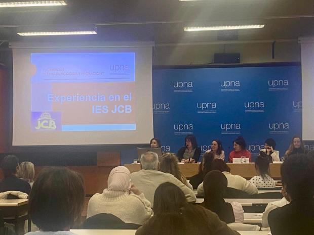 Dichas jornadas buscaban recoger experiencias de aprendizaje y ofrecer talleres magistrales sobre la enseñanza del castellano como lengua de acogida en contextos de educación formal y no formal. En el ámbito de la enseñanza en centros educativos públicos de secundaria, tuve la oportunidad de participar la tarde del viernes 27 de marzo en la mesa redonda coordinada por María Victoria López, profesora titular del Departamento CHE (Upna) y de compartir las líneas estratégicas de mi instituto (IES Julio Caro Baroja) en cuanto a situaciones de enseñanza de ELE en situación de acogida.