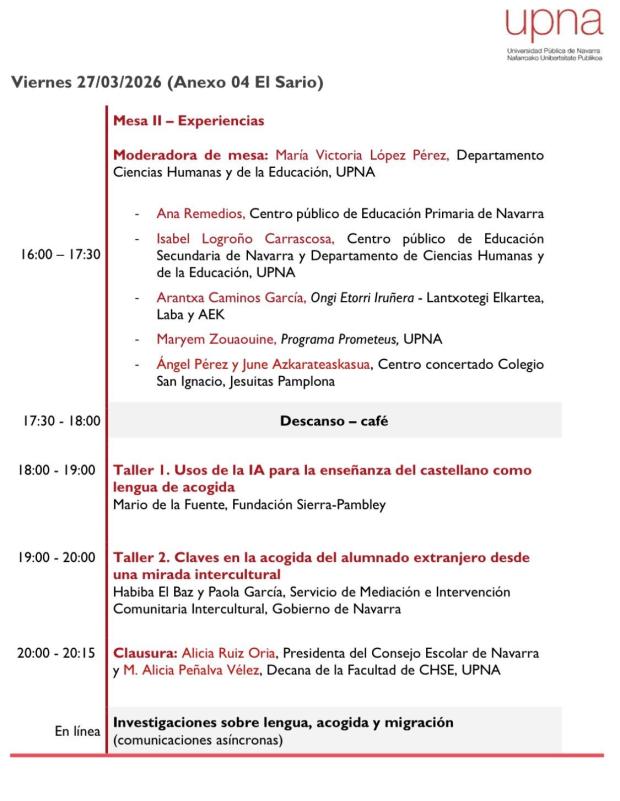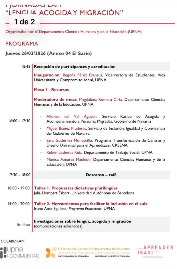 El pasado 26 y 27 de marzo, el Departamento de Ciencias Humanas y de la Educación de la Universidad Pública de Navarra organizó las I Jornadas LAM – «Lengua, Acogida y Migración» en el Anexo 04 de El Sario.